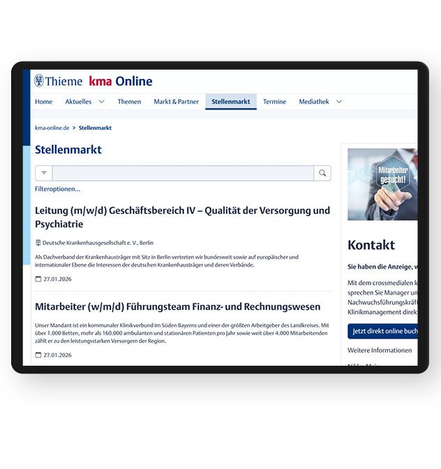 Nutzen Sie kma Online, das führende, IVW-geprüfte Informationsportal für Entscheider im Krankenhaus für Ihren Recruting-Erfolg!