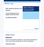 Thieme ist Ihr Partner für wissenschaftliche Kommunikation an Healthcare Professionals aus Klinik und Praxis. Wir bieten attraktive Reichweiten in unsere Fachzeitschriften und vielfältigen digitalen Angeboten.